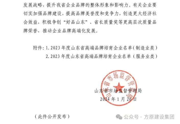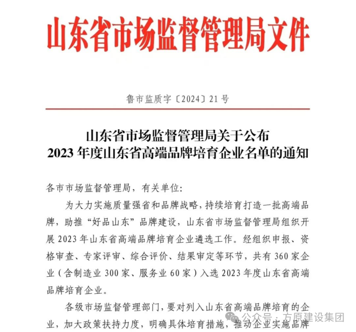 近日,山东省市场监督管理局公布了2023年度山东省高端品牌培育企业名单。经组织申报、资格审查、专家评审、综合评价、结果审定等环节,k8凯发集团山东铁鹰建设工程有限公司经过激烈的角逐成功入选。
