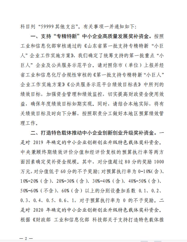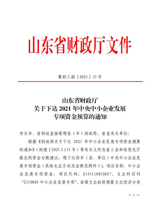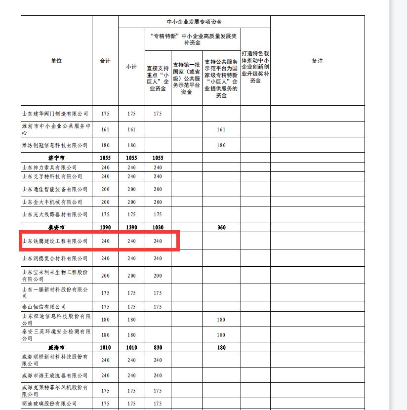 热烈祝贺我企业申报的国家专精特新“重点小巨人”企业顺利获得最高额度等级240万元奖补资金。本次项目申报竞争异常激烈,我公司在全国近千名优秀企业中脱颖而出,荣获国家重点支持“小巨人”企业,充分彰显了我公司超强的竞争力和实力。在本批次奖补名单中,我公司获批奖补资金金额为山东省最高额度等级。是全国同行业中唯一一家获批奖励的企业。