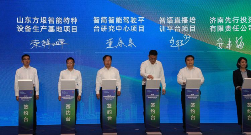 集团副总经理荣祥峰(左三)代表山东方垠智能装备有限公司与起步区签约